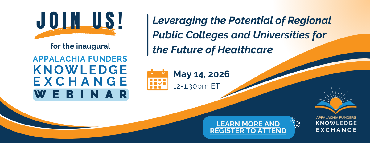 We are excited to announce the launch of the Appalachia Funders Knowledge Exchange's quarterly, member-only webinar series on May 14, 2026 at 12:00 PM ET.